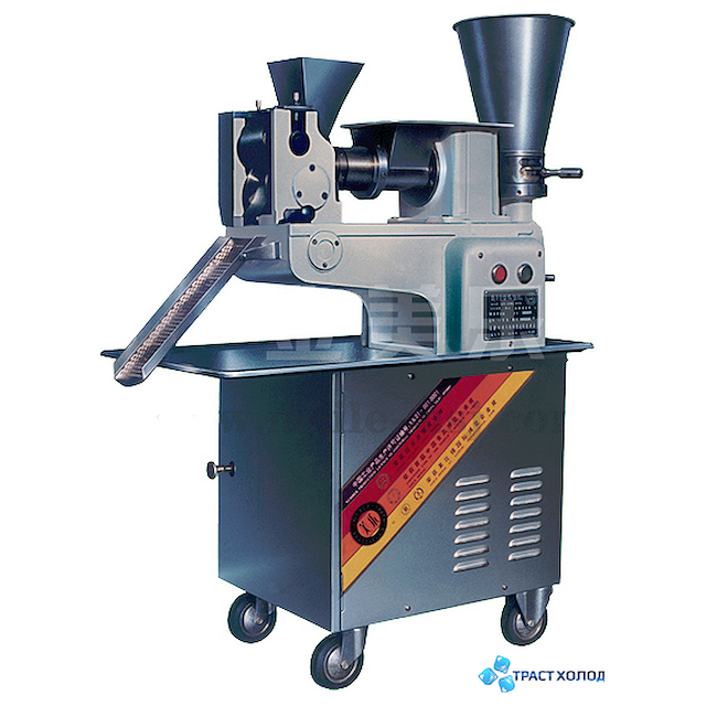 Пельменный аппарат Harbin Golden Happiness JGL135-5B предназначена для использования в составе небольших производств, в гостиницах, ресторанах, столовых для приготовления пельменей с мясной начинкой, со смешанной начинкой из мяса и овощей, с овощной начинкой и пельменей с другими начинками. Принцип работы пельменного аппарата: Основные узлы машины: подача теста, подача фарша, формирование пельменя.При работе готовое тесто загружается в бункер и при помощи шнека подается к выходу , образуя непрерывную тестовую трубку.При этом фарш под действием двухступенчатого лопастного насоса наполняет тестовую трубку.На последнем этапе по этой фаршированной трубке прокатывается формовочный барабан , имеющий фигурные вырезы.Чтобы тесто не прилипало к формовочному барабану , он имеет тефлоновое покрытие и автоматически посыпается мукой.