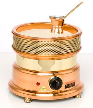 • Материал корпуса – полированная медь и латунь. Терморегулятор на 8 позиций, температурный режим до 300°С Максимальная вместимость 2 турки,  220В, 1,5кВТ, вес нетто-6,5 кг, вес брутто-7,3. В комплект входит 1 мешочек песка, 1 турка.