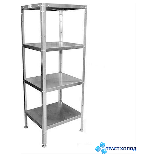 Стеллаж кухонный Юг-Технология СТК-800/500-Н-ЮТ(ребро жесткости) используется на предприятиях общественного питания для хранения кухонного инвентаря и упакованных продуктов. Стеллаж состоит из четырех стоек и полок, позволяет экономить место. Предусмотрена регулировка полок по высоте.