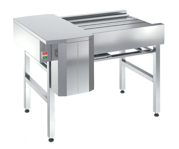 Этот модуль состоит из корпуса, выполненного из нержавеющей стали, двигателя, каркаса, а также поддона, предназначенного для сбора остатков пищи, попадаемых на ленту.