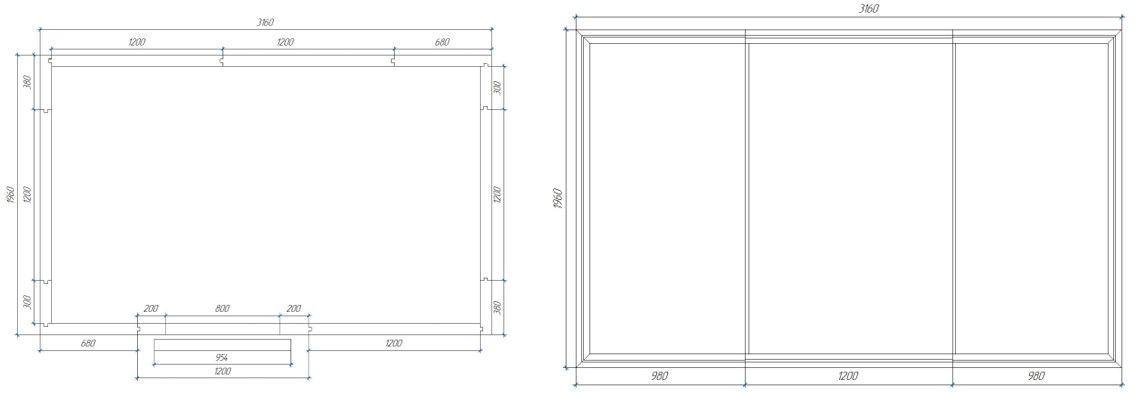 • дверной блок: 1 шт. 1200х2040 мм (световой проем 1850x800);