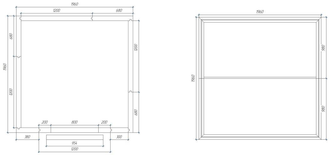 • панель пола: 1 шт. 1960х980х80 мм (концевая шип); 1 шт. 1960х980х80 мм (концевая паз);