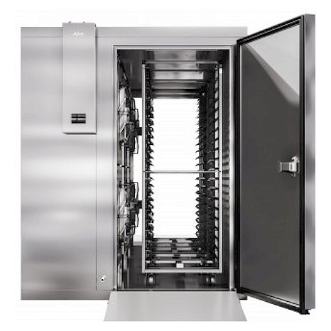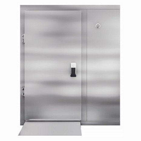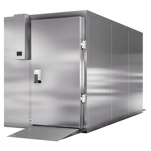 Камера шоковой заморозки Abat ШОКК-203 предназначена для быстрого охлаждения и замораживания различных пищевых продуктов и полуфабрикатов для дальнейшего их хранения на низкотемпературных складах предприятий общественного питания. Модель оснащена 3 воздухоохладителями с 2 вентиляторами каждый, навесными дверьми с низкотемпературным уплотнителем, подогревом и двусторонним замком. Пандусы и пол камеры выполнены из рифленого нержавеющего листа, стенки и потолок - сендвич-панели из высококачественной нержавеющей стали толщиной 80 мм.