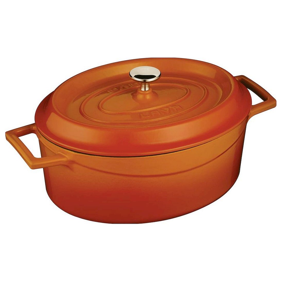Кастрюля порц. 0,42 л. чугун l=9*12 см. h=6 см, овальн., оранжевая "TRENDY" LAVA