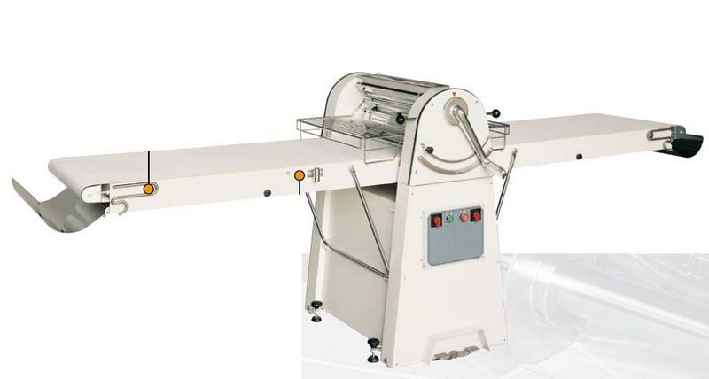 Также отметим, что данное оборудование отличается удобством в обращении, система управления– электромеханическая. Использованный при изготовлении материал корпуса – крашенный металл, что делает применение тестораскаточной машины надежным и долговечным.