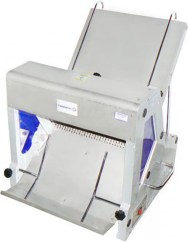 Подходит для пшеничного и ржаного хлеба. Принцип работы хлеборезки: хлеб под собственным весом проходит через вибрирующие металлические ножи.