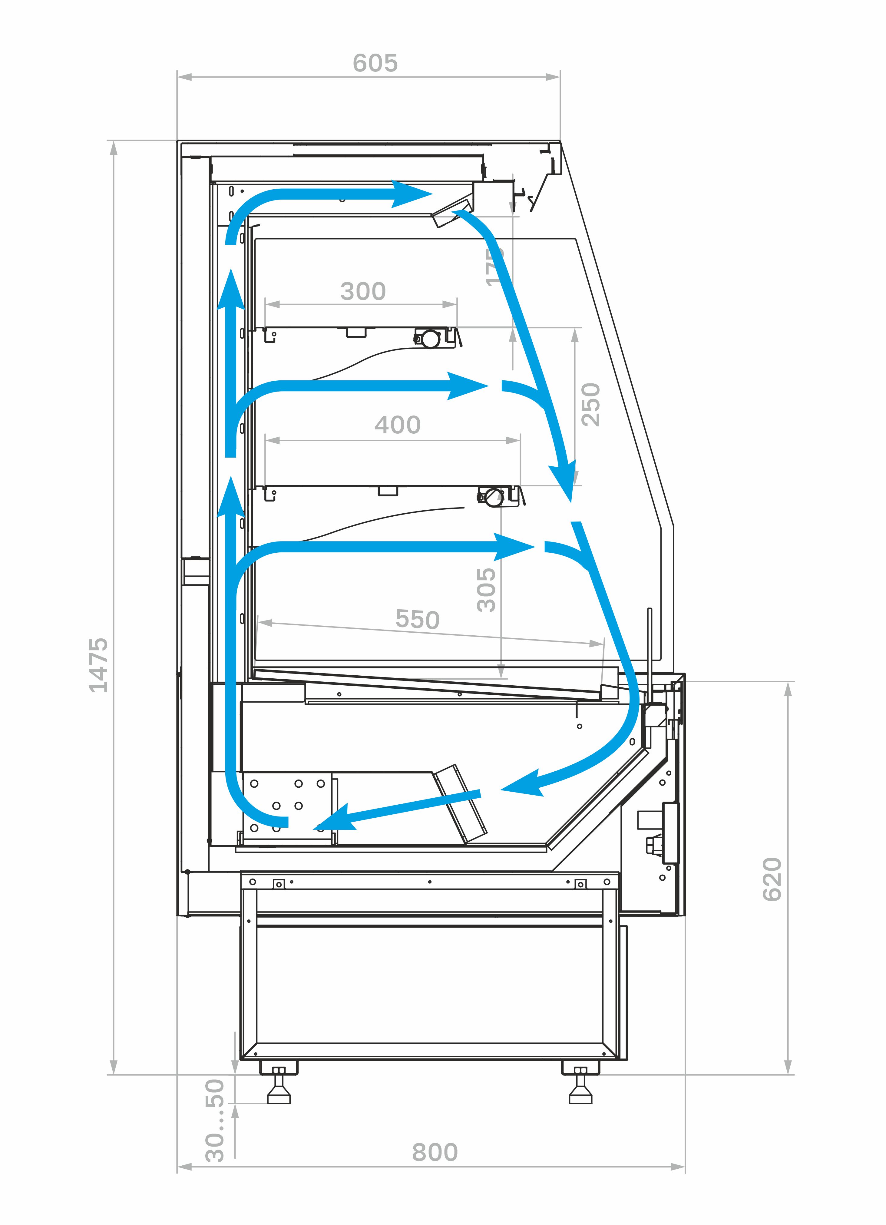 • 2х ступенчатые поддоны для выкладки.