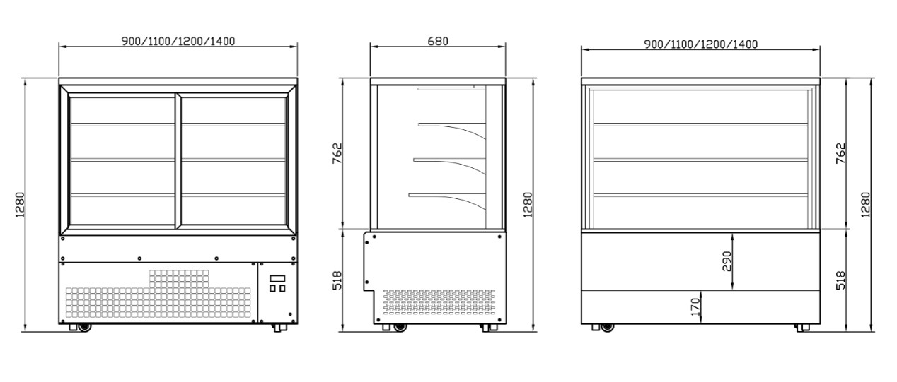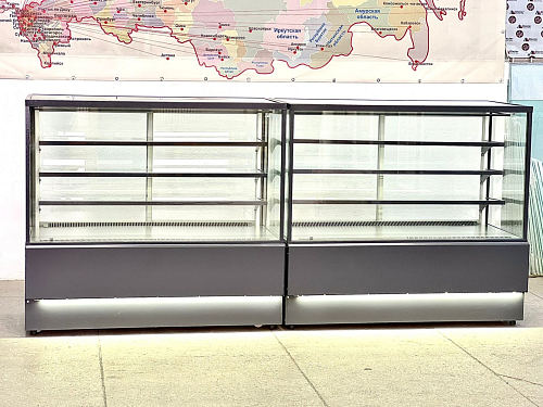 Визуальный эффект: Широкая площадь выкладки, высокие прозрачные двери, светодиодная подсветка всего периметра-максимально подчеркивают содержимое витрины.