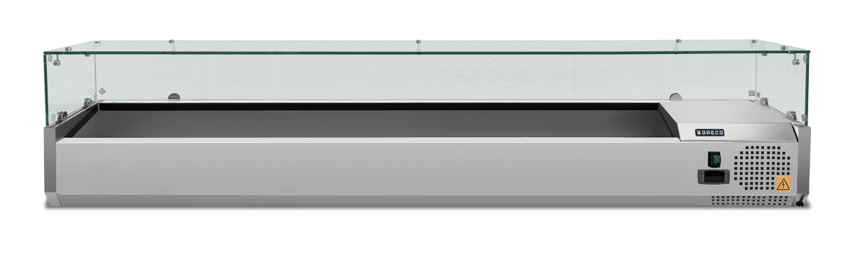 Витрина для ингредиентов Koreco VRX/1200/330 fg предназначена для демонстрации, охлаждения и кратковременного хранения салатов, закусок и ингредиентов для пиццы на предприятиях общественного питания и торговли. Модель оснащена электронным термостатом, 1 ярусом и испарителем, встроенным в стенки ванны.