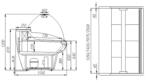 • Витрины предназначены для эксплуатации в закрытом помещении с естественной вентиляцией при температуре окружающей среды от +12 до +25 и относительной влажности не более 60%