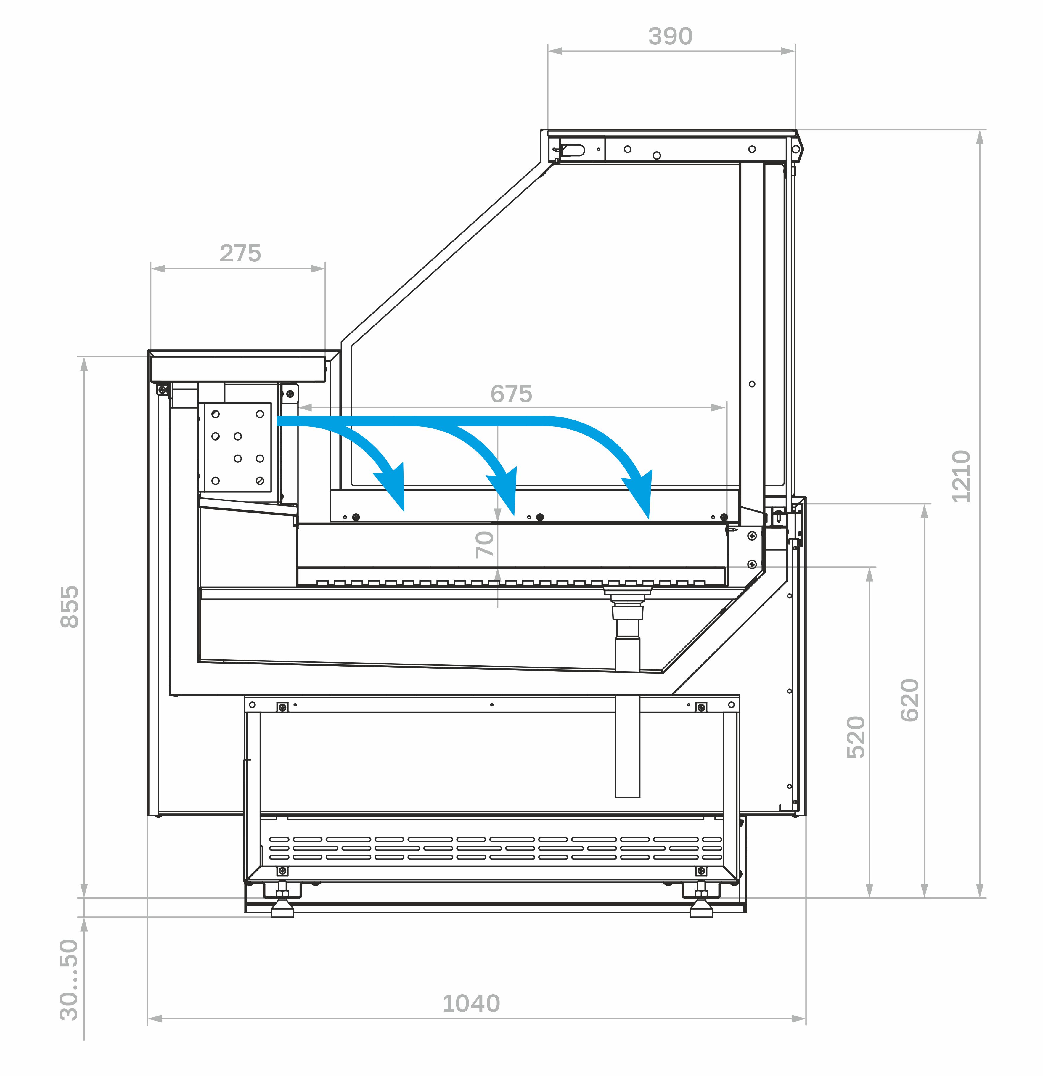 • Экспозиционная поверхность, столешница из шлифованной нержавеющей стали