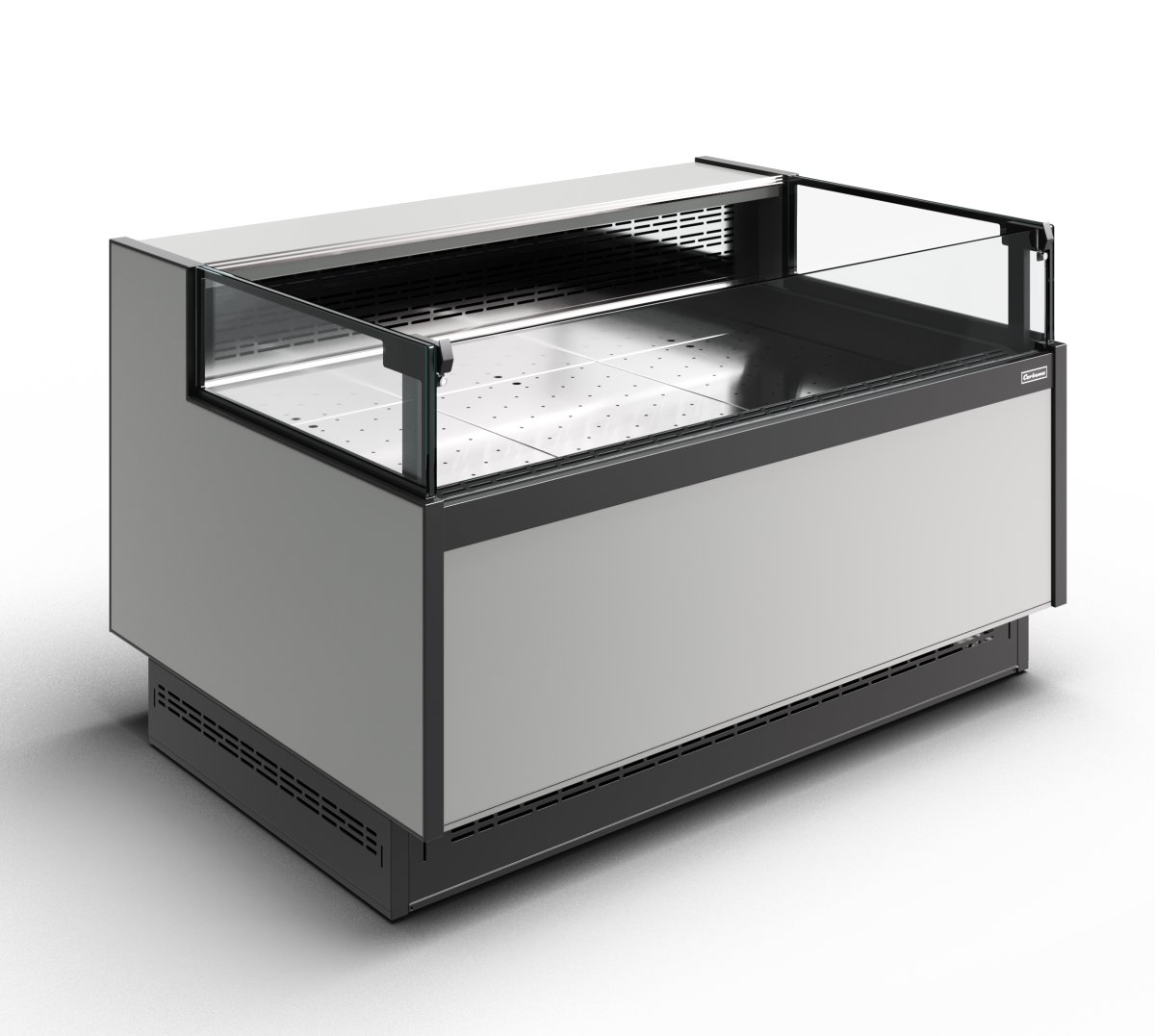 Холодильная витрина Полюс Carboma GC110 SP 1,25-2 рыба на льду открытая с боковинами (версия 2.0) (9006-0430) используется на предприятиях общественного питания и торговли для охлаждения, кратковременного хранения, демонстрации и продажи свежей рыбы.