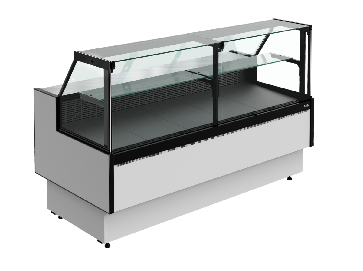 Стильная гастрономическая витрина GC85 (PRAIA 2) с кубическим дизайном экономит пространство без потери функциональности, использует энергоэффективный газ R290, защиту стекла от запотевания и варианты облицовки под стиль вашего магазина.