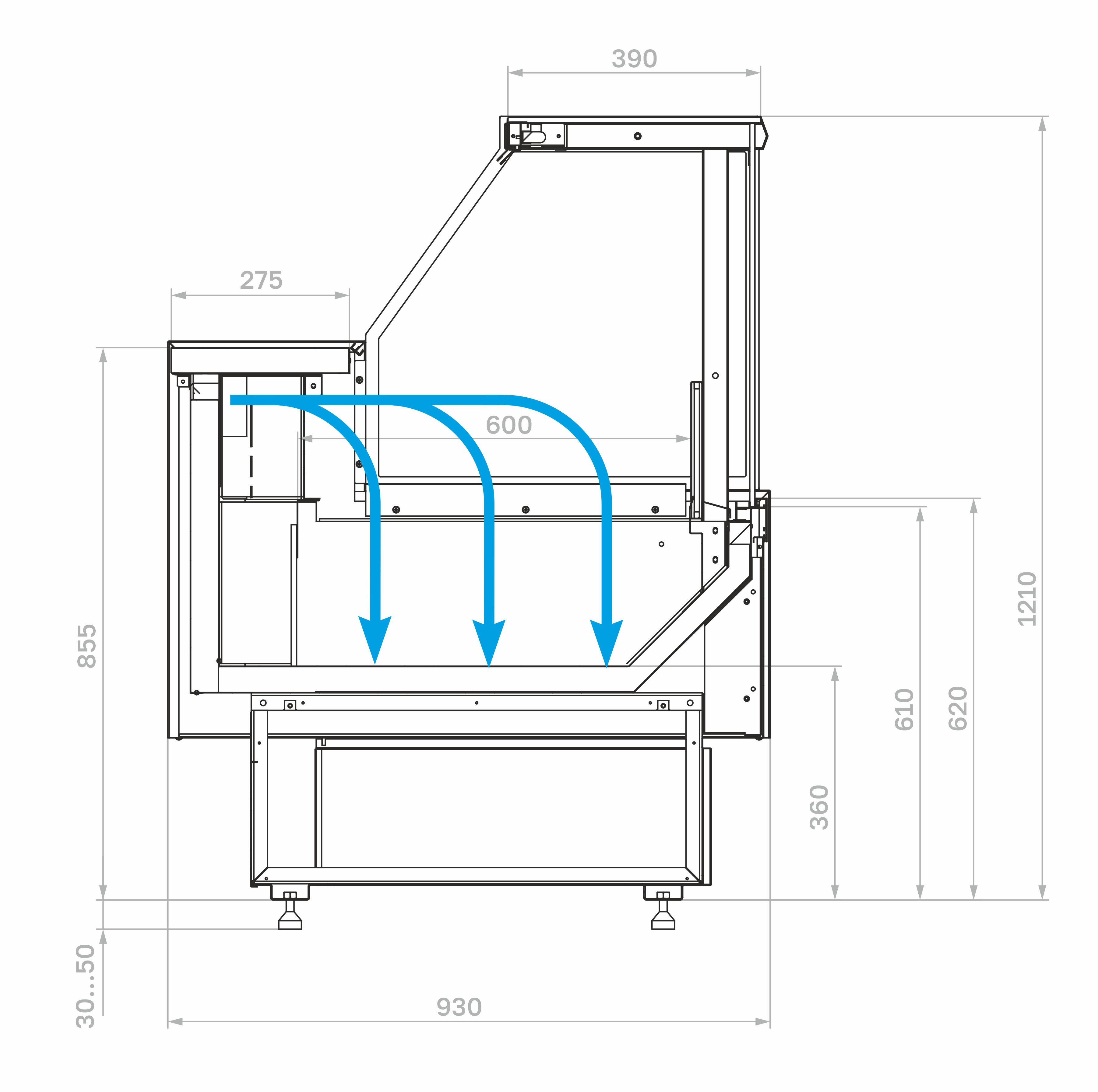 Эта торговая витрина сочетает в себе современный дизайн и передовые технологии, будучи универсальным решением для любого магазина. Ее стандартная глубина 930 мм позволяет легко вписать ее в существующее пространство.