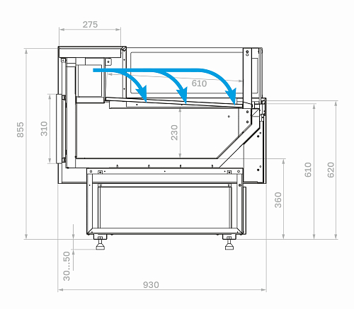 Эта торговая витрина сочетает в себе современный дизайн и передовые технологии, будучи универсальным решением для любого магазина. Ее стандартная глубина 930 мм позволяет легко вписать ее в существующее пространство.