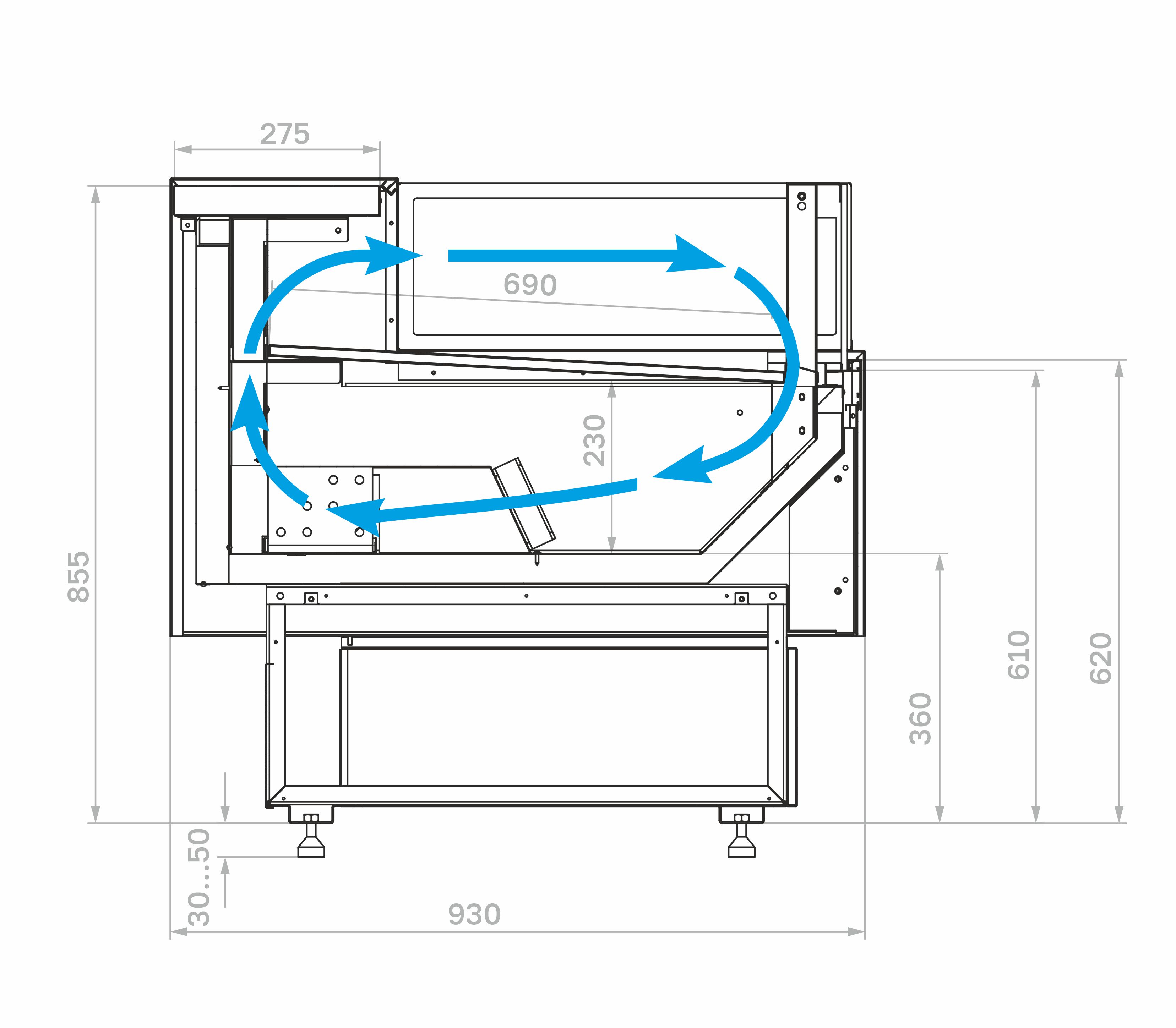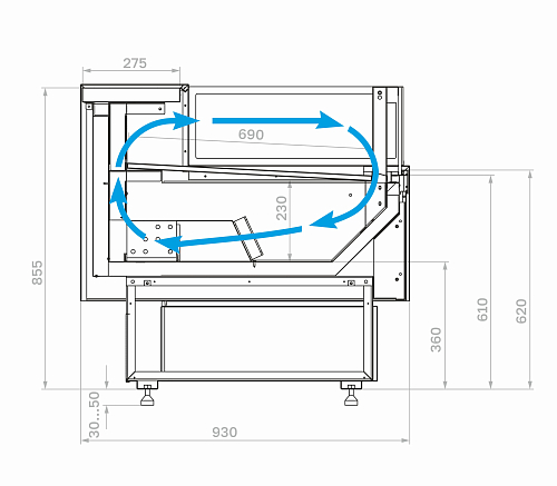 Эта торговая витрина сочетает в себе современный дизайн и передовые технологии, будучи универсальным решением для любого магазина. Ее стандартная глубина 930 мм позволяет легко вписать ее в существующее пространство.