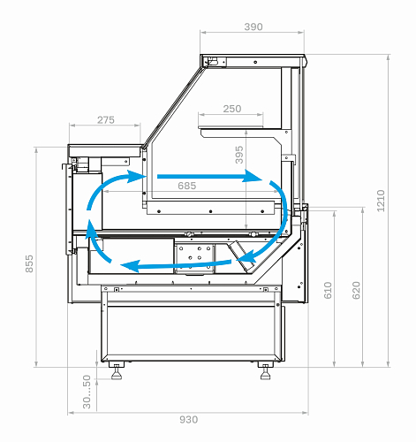 Эта торговая витрина сочетает в себе современный дизайн и передовые технологии, будучи универсальным решением для любого магазина. Ее стандартная глубина 930 мм позволяет легко вписать ее в существующее пространство.