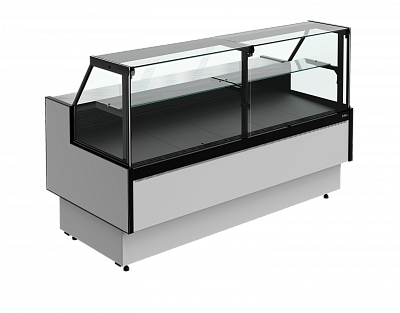 Благодаря модульной конструкции из линейных и угловых секций, вы можете создать плавные и эргономичные линии торговой зоны, идеально адаптированные под вашу планировку. Витрина прекрасно подходит для демонстрации широкого ассортимента: от кондитерских изделий и сыров до мясных деликатесов.