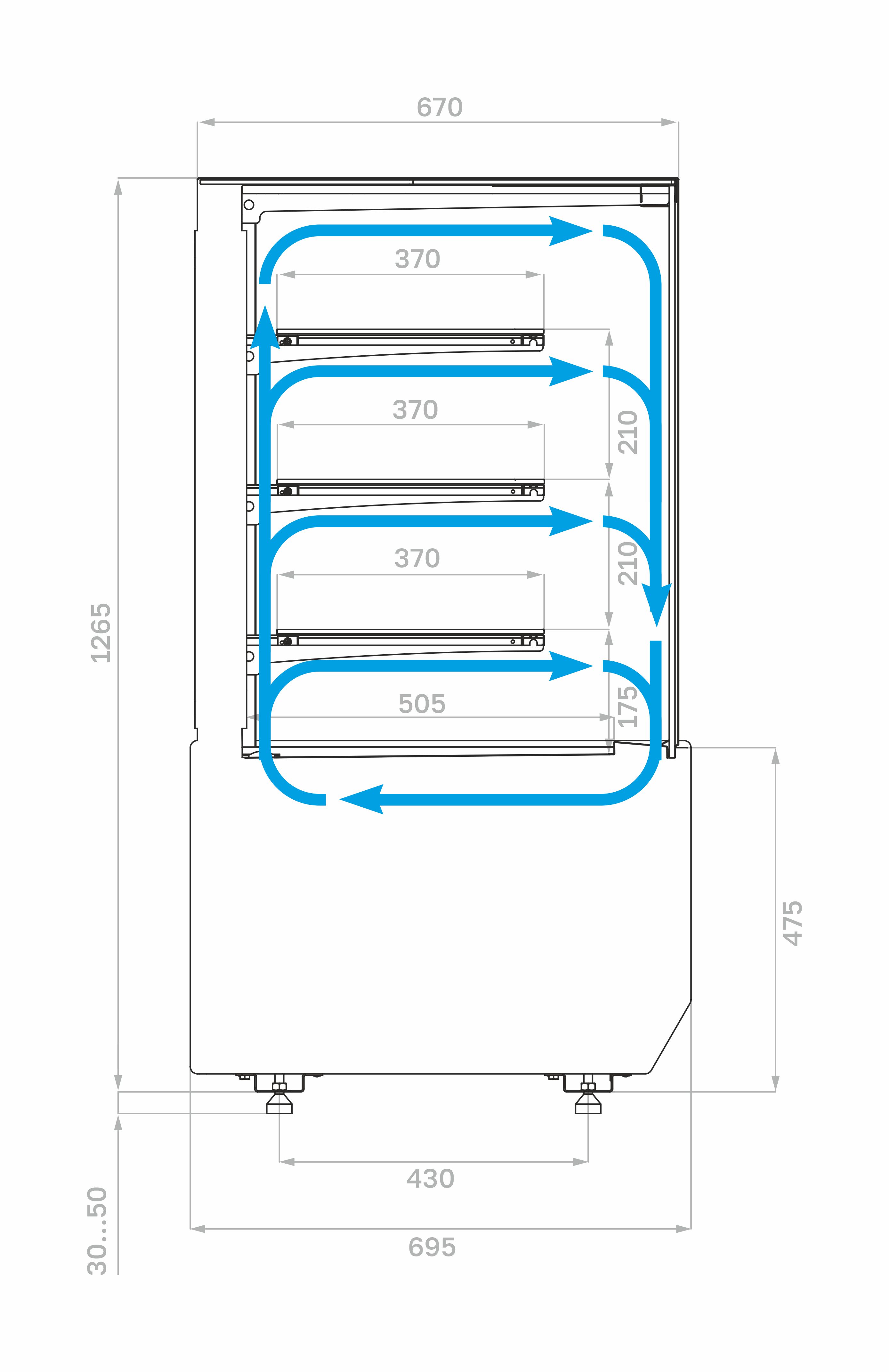 Витрина должна быть установлена не ближе 2 м от отопительных приборов. Запрещается эксплуатация витрины при попадании на нее прямых солнечных лучей, воздушных потоков от кондиционеров, вентиляторов и обогревателей.