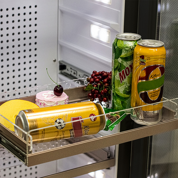 Так как он имеет стеклянную дверь и панорамное освещение, в нём можно не только хранить, но и демонстрировать товары или продукты и использовать его как холодильник-витрину, что несомненно повысит продажи, при использовании его в коммерческих целях.