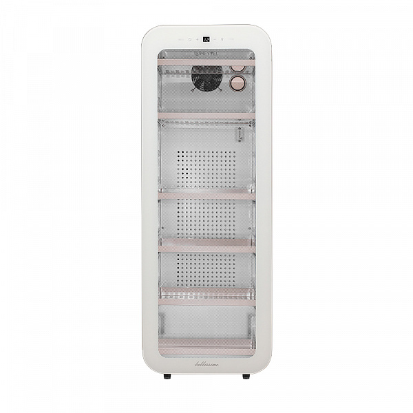 Внутри бьюти-холодильник покрыт антибактериальным составом, благодаря которому предотвращается размножение вредных бактерий, а угольный фильтр устранит посторонние запахи.