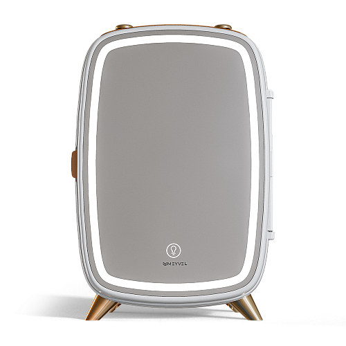 Дверца холодильника оснащена зеркалом с LED-подсветкой, которое обеспечивает комфортное нанесение макияжа. Регулируемые ножки позволяют установить холодильник под нужным углом для удобства использования.