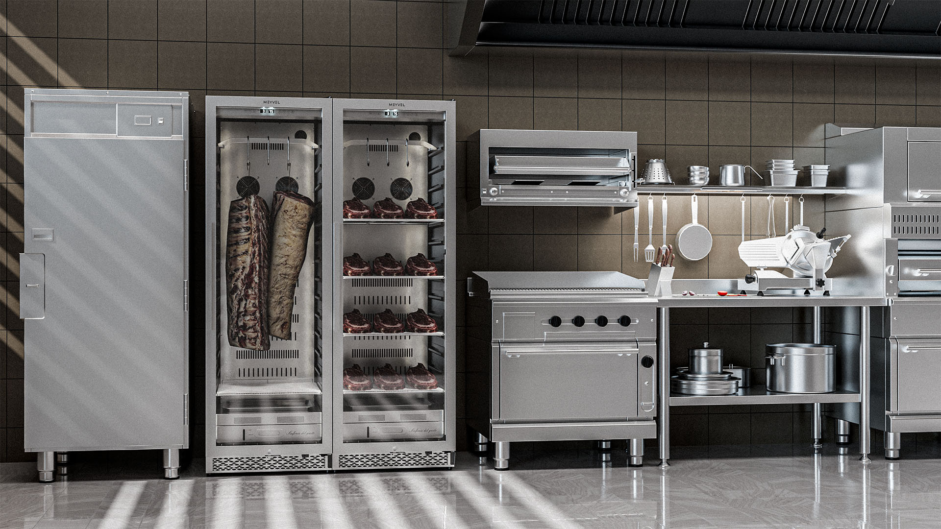 Совершенный шаг вперёд для любителей мяса и владельцев заведений общепита — встраиваемый холодильник Meyvel MM-135SR. Это компактное, но ёмкое устройство на 423 литров способно вместить до 135 килограммов изысканной говядины и обеспечить идеальные условия для её вызревания.