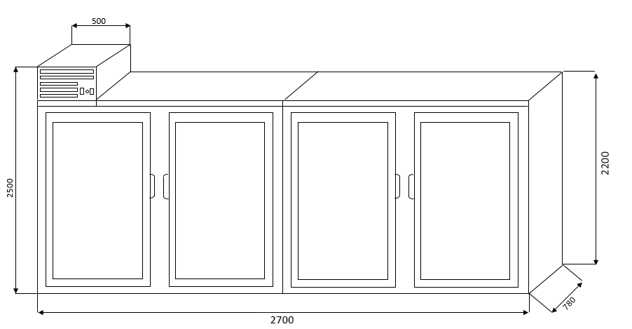 • Высота без моноблока: 2200 мм.