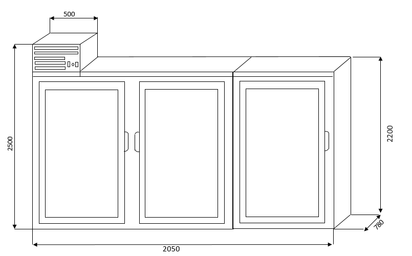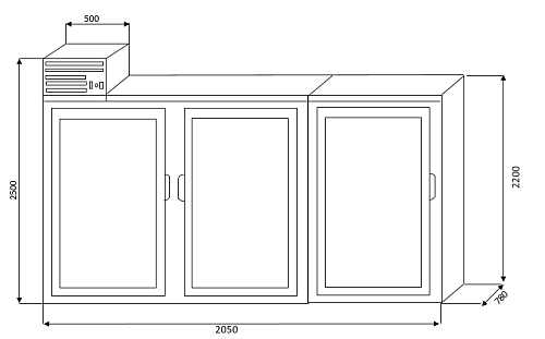 Холодильный шкаф с прозрачной дверью на 3 секции Berk ШХС 2.7 стекло, подсветка - модель №24