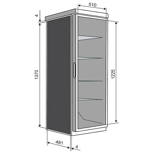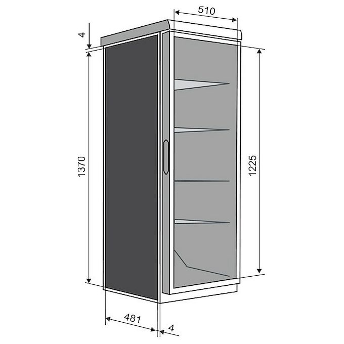 • две решетчатые полки с цинковым покрытием, 520x356 мм (нагрузка 40 кг), полимеризированное покрытие