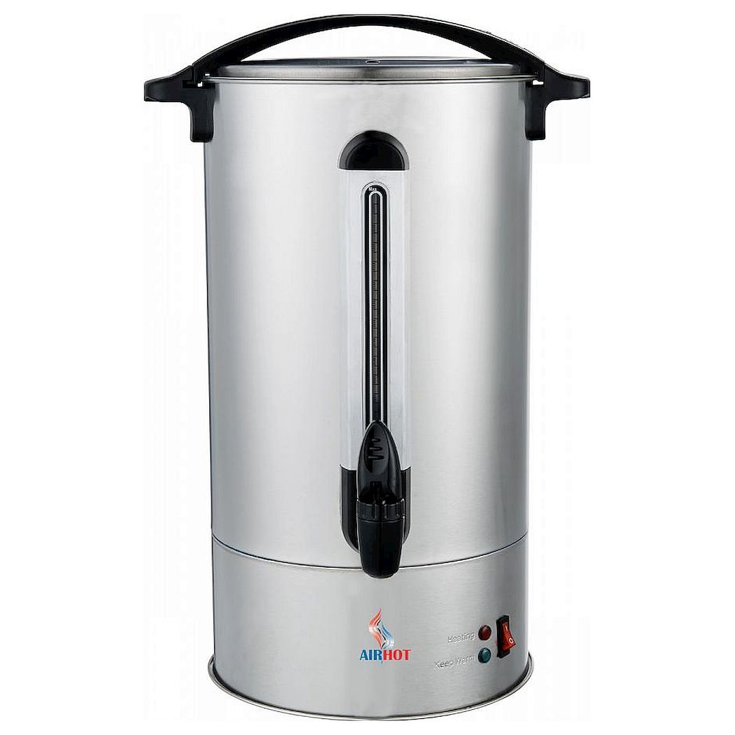 Кипятильник AIRHOT WBA-10 предназначен для нагрева большого количества воды на предприятиях общественного питания и торговли. одель оснащена автоматическим контролем уровня и температуры воды, аварийным термостатом, индикатором нагрева и закрытым ТЭНом. Корпус выполнен из нержавеющей стали.