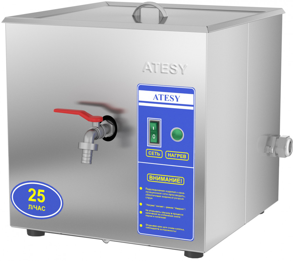 Кипятильник Atesy Фонтан АКНЭ- 25 устанавливается на предприятиях общественного питания и торговли для непрерывного приготовления кипятка.