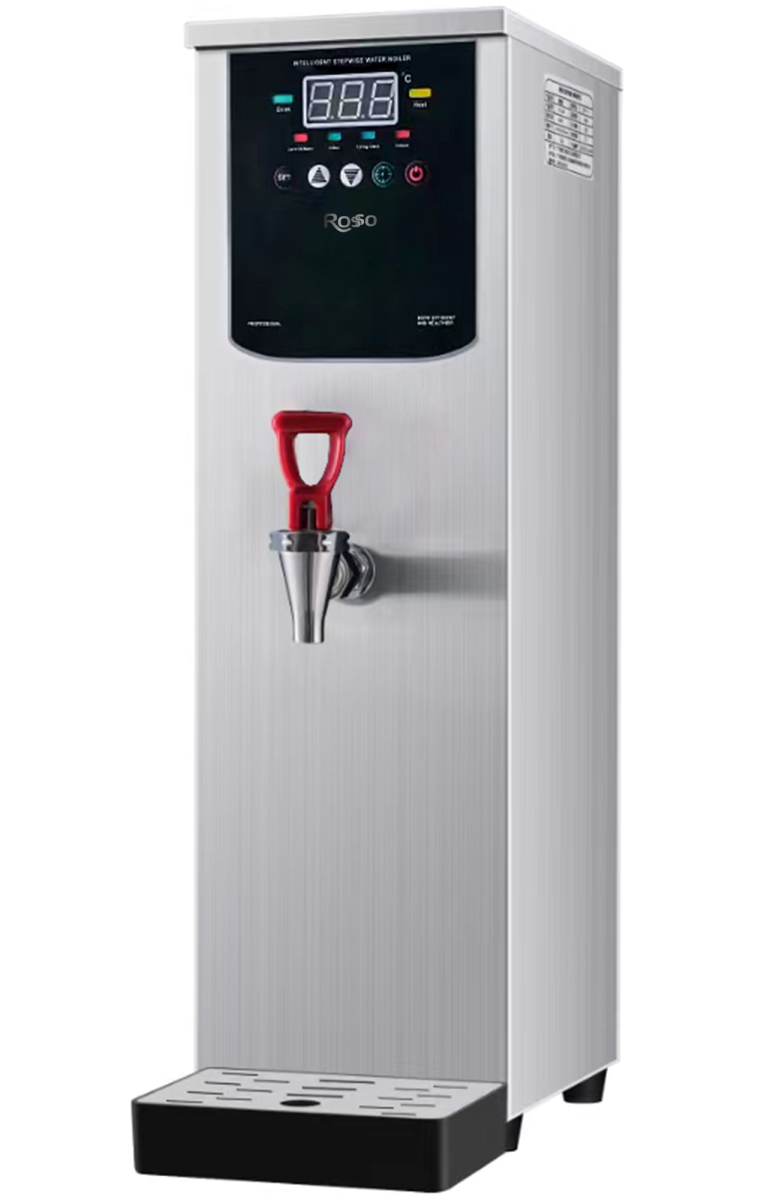 Кипятильник проточный Rosso HWB-5L (серебр.) предназначен для быстрого нагрева воды и поддержания ее температуры в течение длительного времени. Кипятильник требует подключения не только к электросети, но и к водопроводу, и позволяет непрерывно разливать кипяток, не заботясь об уровне воды в резервуаре. Настольный электрокипятильник оптимален для линий раздачи ресторанов, кафе, столовых, закусочных. Он также идеально подойдет для приготовления горячих напитков в барах и оснащения детских садиков, школ, офисов и больниц. Кипятильник ROSSO работает по принципу ступенчатого нагрева воды. Электроды в каждой ступени посылают сигнал на микрокомпьютер, который, обрабатывая сигналы, активирует нагревательный элемент и электромагнитный клапан, тем самым регулируя температуру и объем подачи воды. Таким образом, вода, нагретая на одном уровне, закипает. Затем нагревается следующий уровень, в результате формируется ступенчатый цикл нагрева. Такая технология позволяет избавиться от повторного нагрева воды и экономит её потребление .