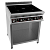Модель оснащена электронной панелью управления с цифровой индикацией, таймером, съемным жировым фильтром и регулируемыми по высоте ножками. Плита установлена на полузакрытой подставке. На полке под плитой можно разместить кухонные принадлежности.