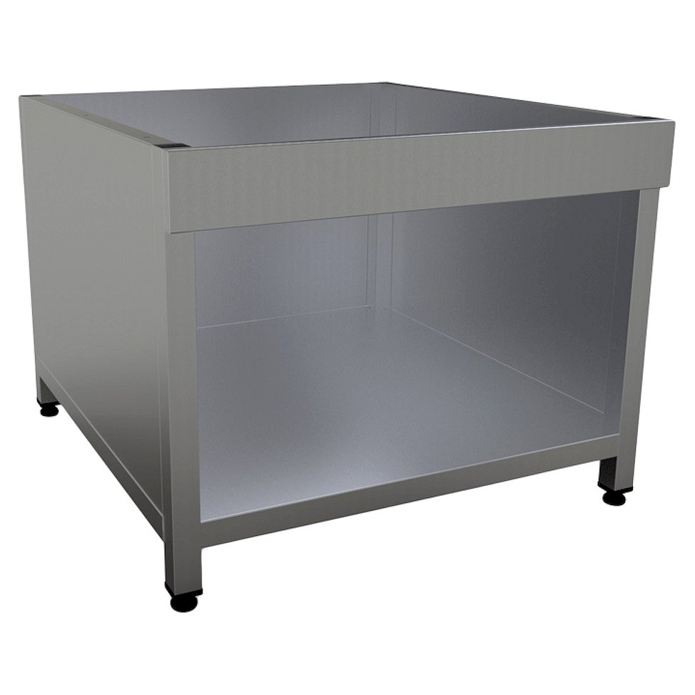 Поставка оснащена регулируемыми по высоте ножками и сплошой полкой, которую можно использовать для хранения кухонного инвентаря. Корпус выполнен из нержавеющей стали AISI 430, каркас - из профильной трубы 40х40 мм.