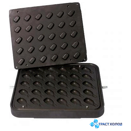 Форма для тарталетницы Kocateq DH Tartmatic Plate 28 представляет собой две пластины, одна из которых имеет выемки, а вторая выпуклости.