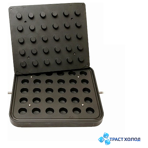 Форма для тарталетницы Kocateq DH Tartmatic Plate 32 представляет собой две пластины, одна из которых имеет выемки, а вторая выпуклости.