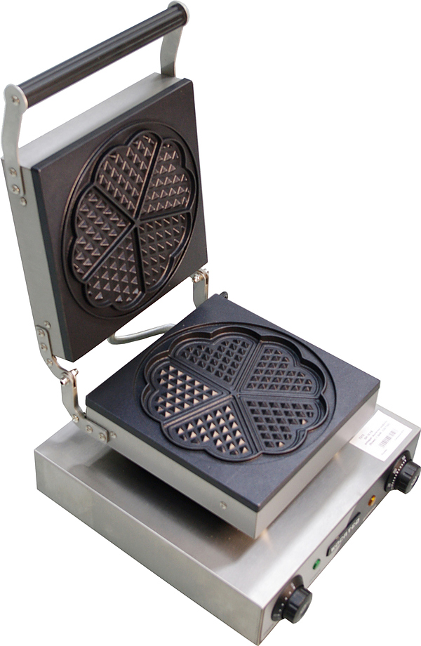 Вафельница Kocateq GH15FB используется на предприятиях общественного питания и торговли, в пекарнях и кондитерских для выпечки вафель в форме цветка. Модель оснащена механической панелью управления, таймером до 15 минут со звуковым сигналом и термостатом для регулировки температуры. Рабочая поверхность выполнена из специального теплопроводящего сплава методом высокоточного литья, корпус - из нержавеющей стали AISI 304 и AISI 430, ножки - из пластика.