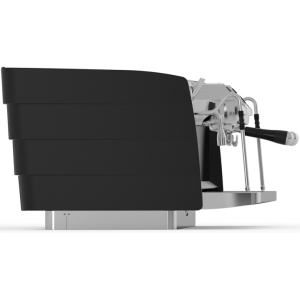 Кофемашина-автомат с двумя высокими термокомпенсированными группами имеет корпус из нержавеющей стали.