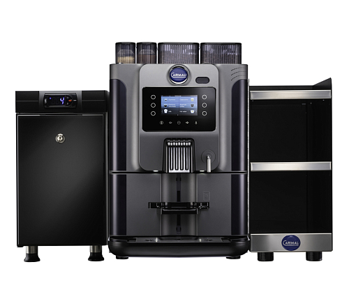 Суперавтоматическая кофемашина Carimali BlueDot, 1 бункер для зерна + 3 для порошков со встроенной кофемолкой, предназначена для приготовления превосходного кофе и кофейных напитков из натурального зернового кофе и натурального молока.