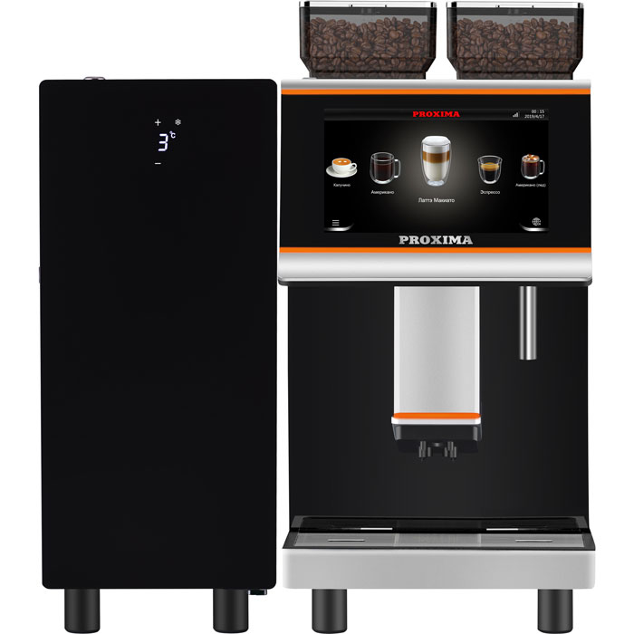 Встроенный датчик наличия молока в системе и датчик температуры молока. При отсутствии молока приготовление напитков с его содержанием блокируется.