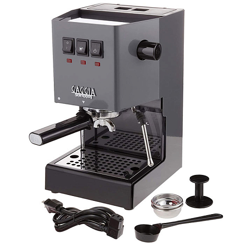 Кофемашина Gaggia Classic Grey используется в офисах, различных барах, кафе и в домашних условиях для профессионального заваривания кофе эспрессо, капучино, латте и других кофейных напитков. Корпус полностью выполнен из нержавеющей стали, кофейная группа и портафильтр - из хромированной латуни, каплесборник - из нержавеющей стали и пластика.