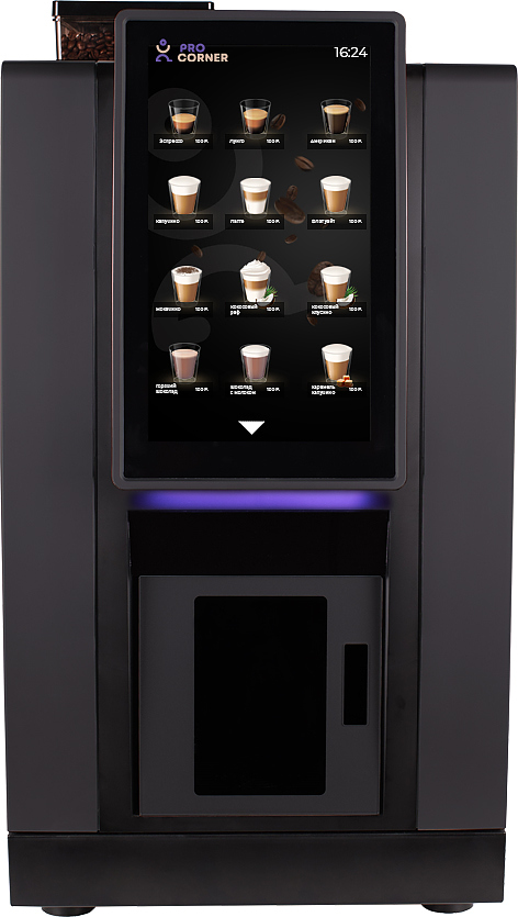 • Выбор напитков – с помощью высококонтрастного вертикального 14” тачскрин-дисплея, расположенного под удобным для пользователя углом.