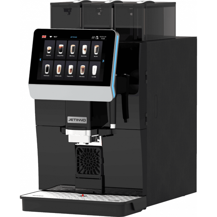 Jetinno JL33A позволяет наслаждаться разнообразием кофейных напитков — от насыщенного эспрессо до нежного латте или горячего шоколада — благодаря поддержке натурального молока и двух бункеров для растворимых ингредиентов (1,5 и 2 литра). Встроенная система Venturi создаёт идеальную молочную пену, обеспечивая профессиональную текстуру для капучино и других молочных напитков. Мощная помпа с давлением 9 бар гарантирует глубокую экстракцию, раскрывая богатый аромат и вкус кофе. Управление осуществляется через 10,1-дюймовый сенсорный HD-дисплей на базе Android, который отличается высокой чёткостью и интуитивной навигацией, упрощая выбор напитков даже для пользователей без опыта.