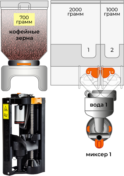 3 контейнера под ингредиенты+ горячая вода для чая.