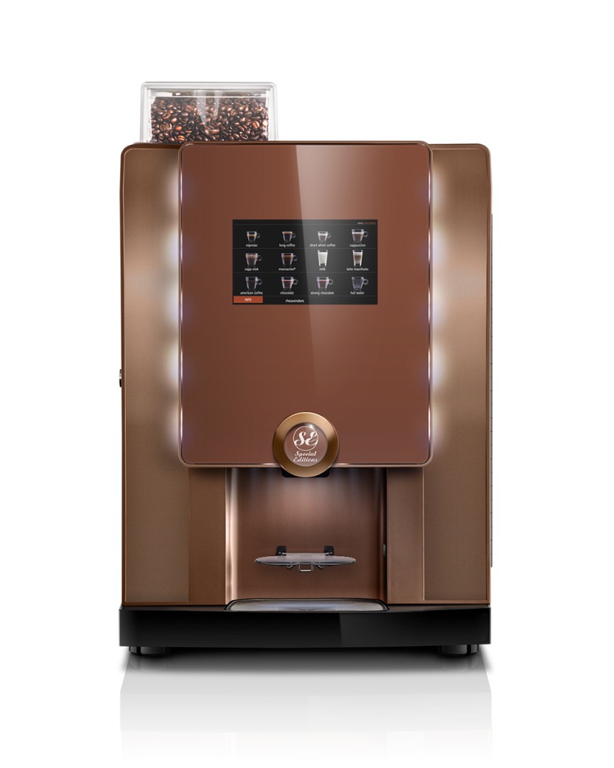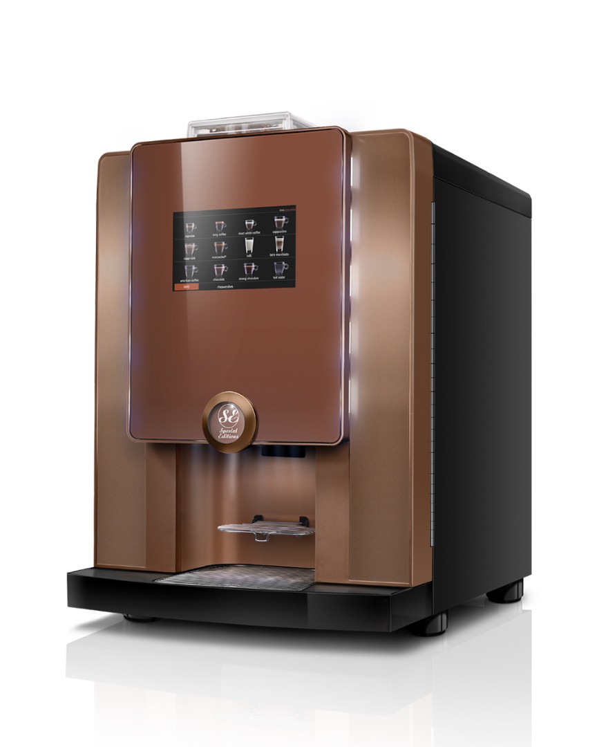 Кофе-машина Grande premium модельного laRhea V + предназначена для высокой проходимости и приготовления напитков большого объема формата Coffee to Go. Сенсорный экран с возможностью интерактивного общения с пользователем – вы можете транслировать сообщения и свой логотип, рекламу, информацию о напитках и менять ее по желанию.