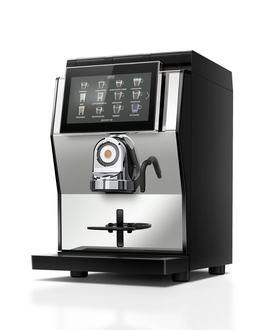 Кофемашина rhTT1.v+ была разработана как идеальное решение для бизнеса: сенсорный экран, высокая станция для стаканчиков большого размера, 48 напитков в меню.
