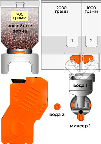 • модулем для хранения стаканчиков, крышек, сахара, воды.