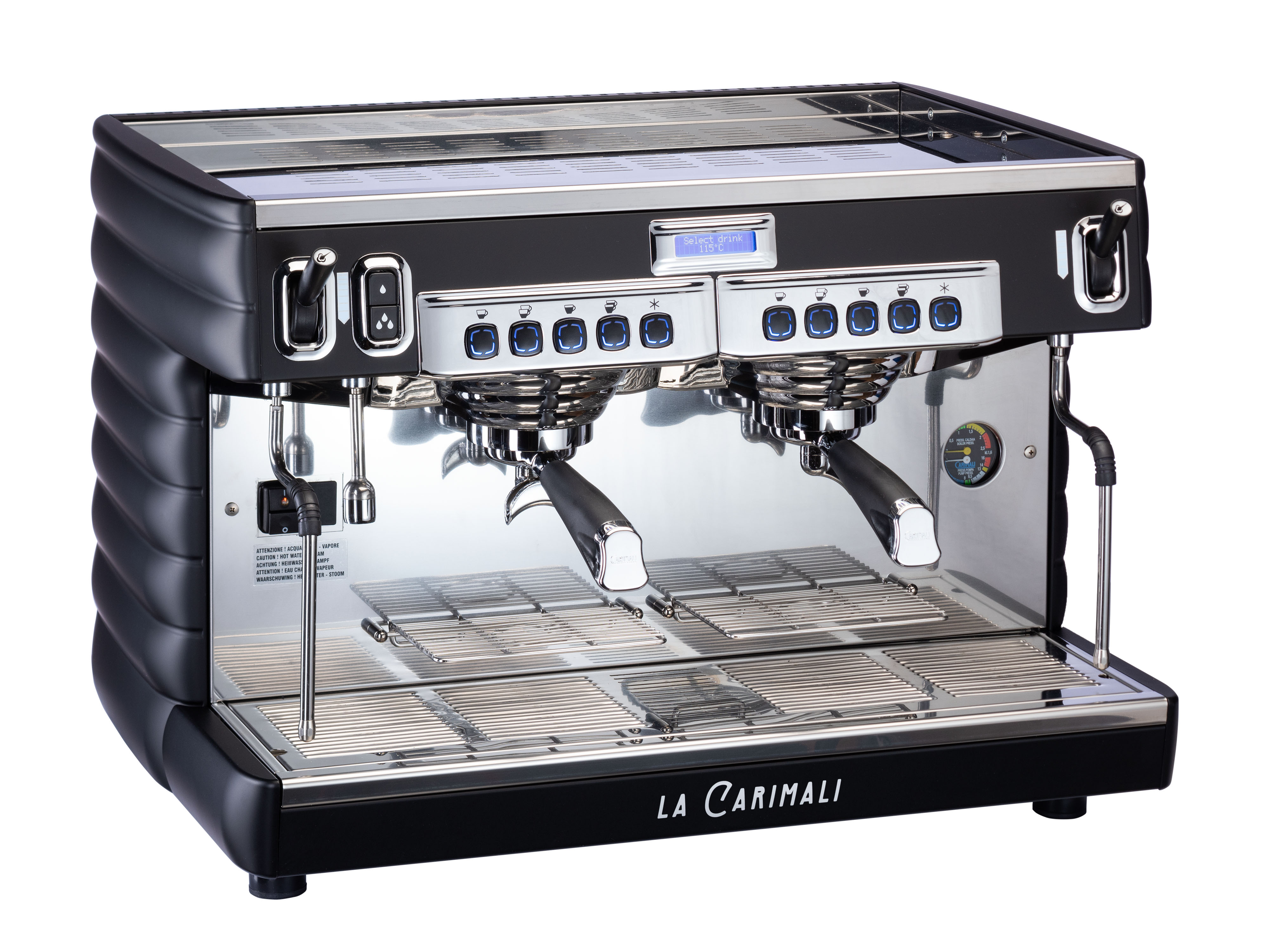 Удобный для пользователя дисплей, программируемые порции горячей воды, манометр для парового котла и насоса, программирование предсмачивания для всех видов напитков и манометр для постоянного контроля давления в бойлере.