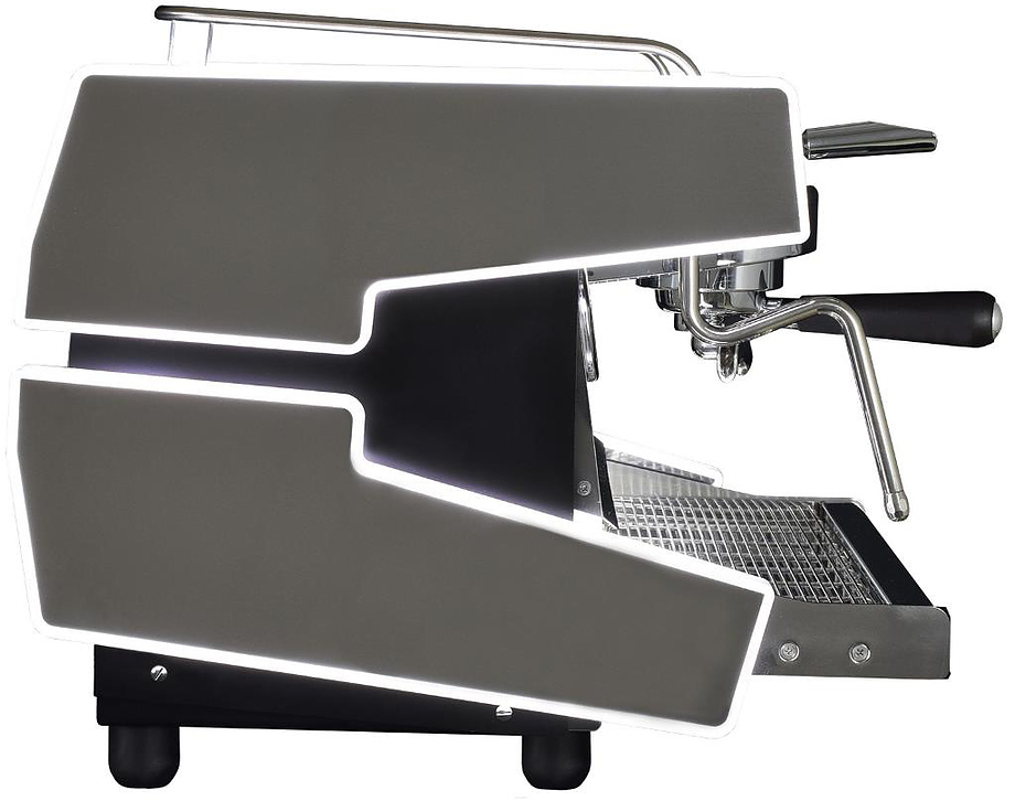 Модель оснащена джойстиком включения пара и регулируемым по высоте поддоном для чашек. Корпус выполнен из пищевой нержавеющей стали.